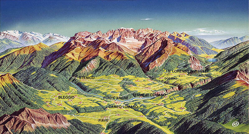 Là dove il Lago di Garda cede il passo alle Dolomiti di Brenta, si distende una vallata verdissima, chiusa in un abbraccio dai tre soleggiati altipiani del Banale, del Bleggio e del Lomaso. E’ la valle della salute e del benessere per il corpo e lo spirito, grazie alle curative acque termali amiche della pelle ed alla possibilità di svagarsi scegliendo tra numerose camminate, percorsi per mountain-bike, arrampicata e trail.