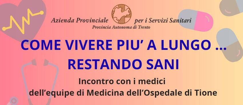La serata avrà come come oggetto i seguenti argomenti: attività svolte dall’unità operativa Medicina di Tione - dott. Matteo Riccadonna (Internista - direttore) controlla al meglio la tua pressione del sangue - dott. Agostino Cividini (cardiologo) riduci il tuo livello di grassi nel sangue - dott.ssa Elisa Battaia (cardiologa) raggiungi un adeguato peso corporeo - dott.ssa Manuela Ricchena (internista-nutrizionista) previeni il diabete mellito - dott.ssa Samantha Cordone (diabetologa) Giovedì, 4 dicembre ad ore 20:30presso la sala Sette Pievidella Comunità delle GiudicarieL’ingresso è gratuito!Pubblichiamo la locandina: Locandina Incontro popolazione Medicina Tione.pdf 142,45 kB